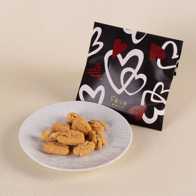 軽くローストしたピーカンナッツをホワイトチョコレートとキャラメルパウダーで包みました。