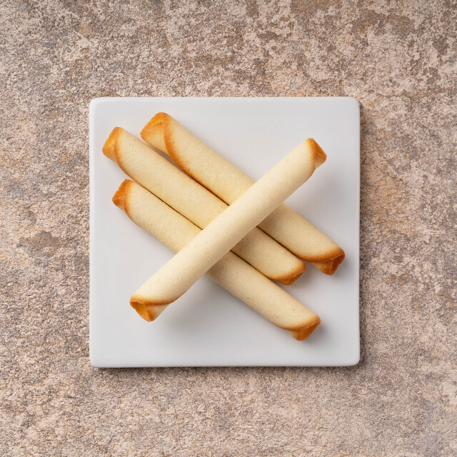 ラングドシャ生地をロール状に巻いた、サクサクの焼き菓子です。