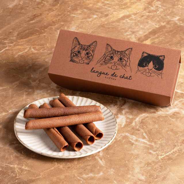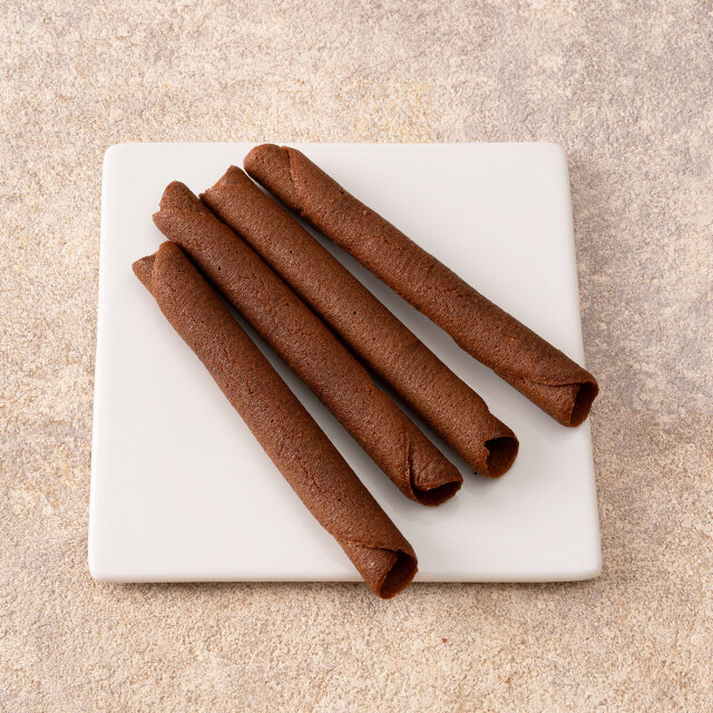 ココア味のラングドシャ生地をロール状に巻いた、サクサクの焼き菓子です。